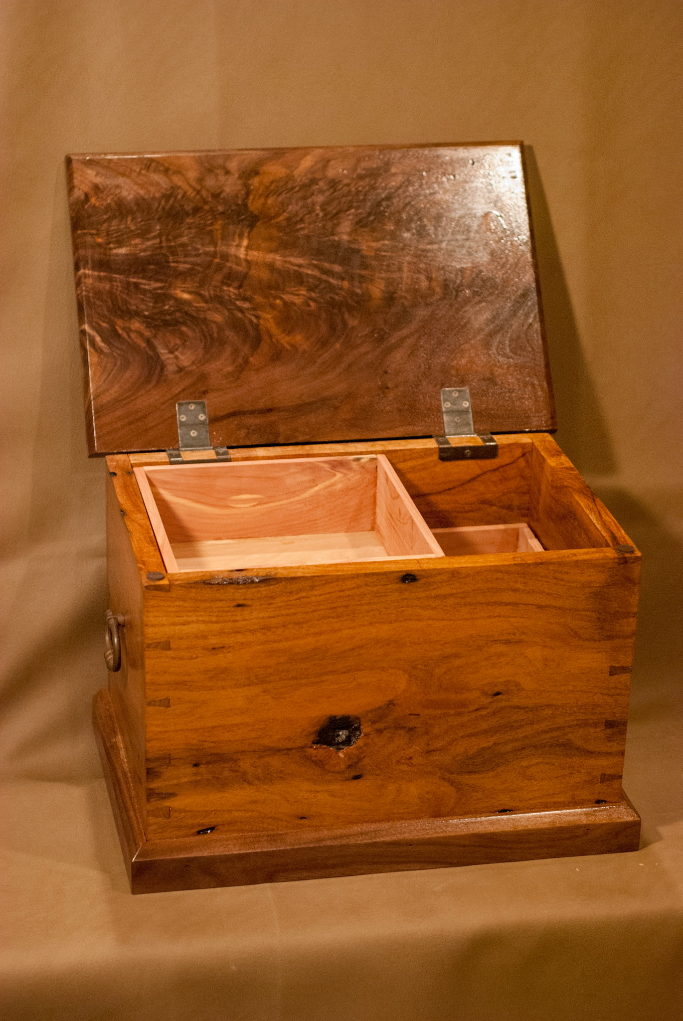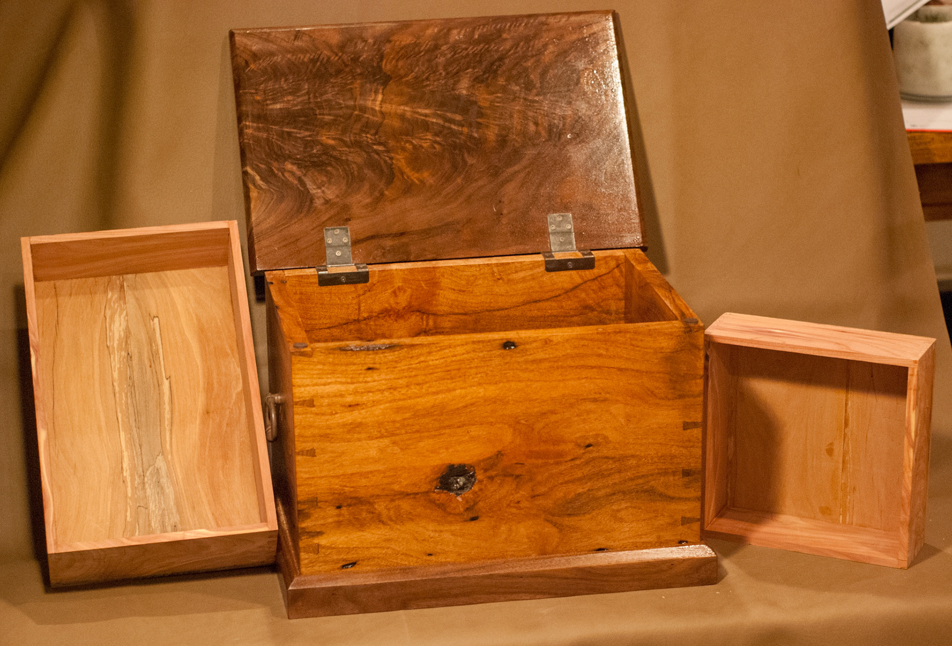 The walnut board pieced back together to show where the figured piece came from.