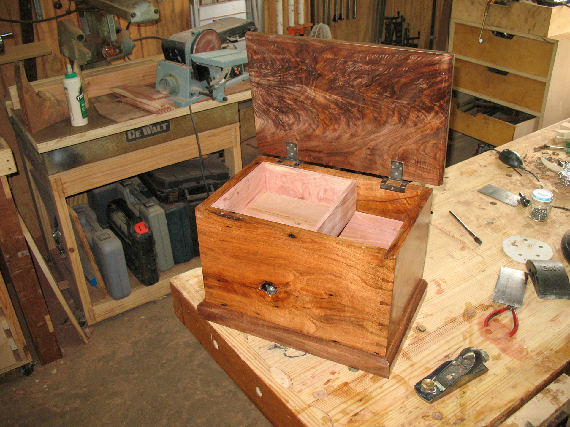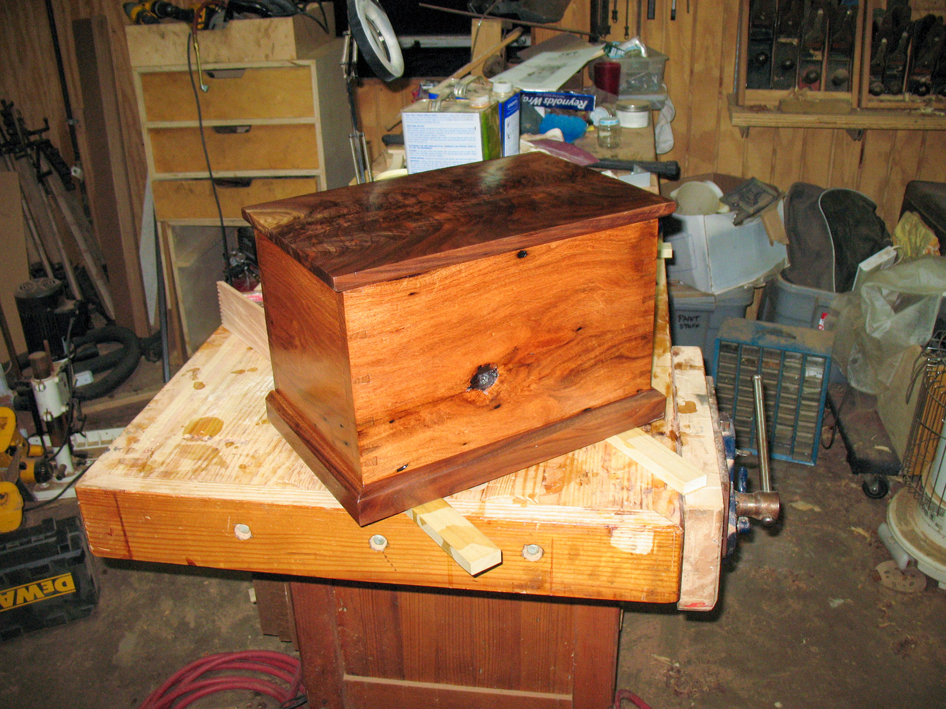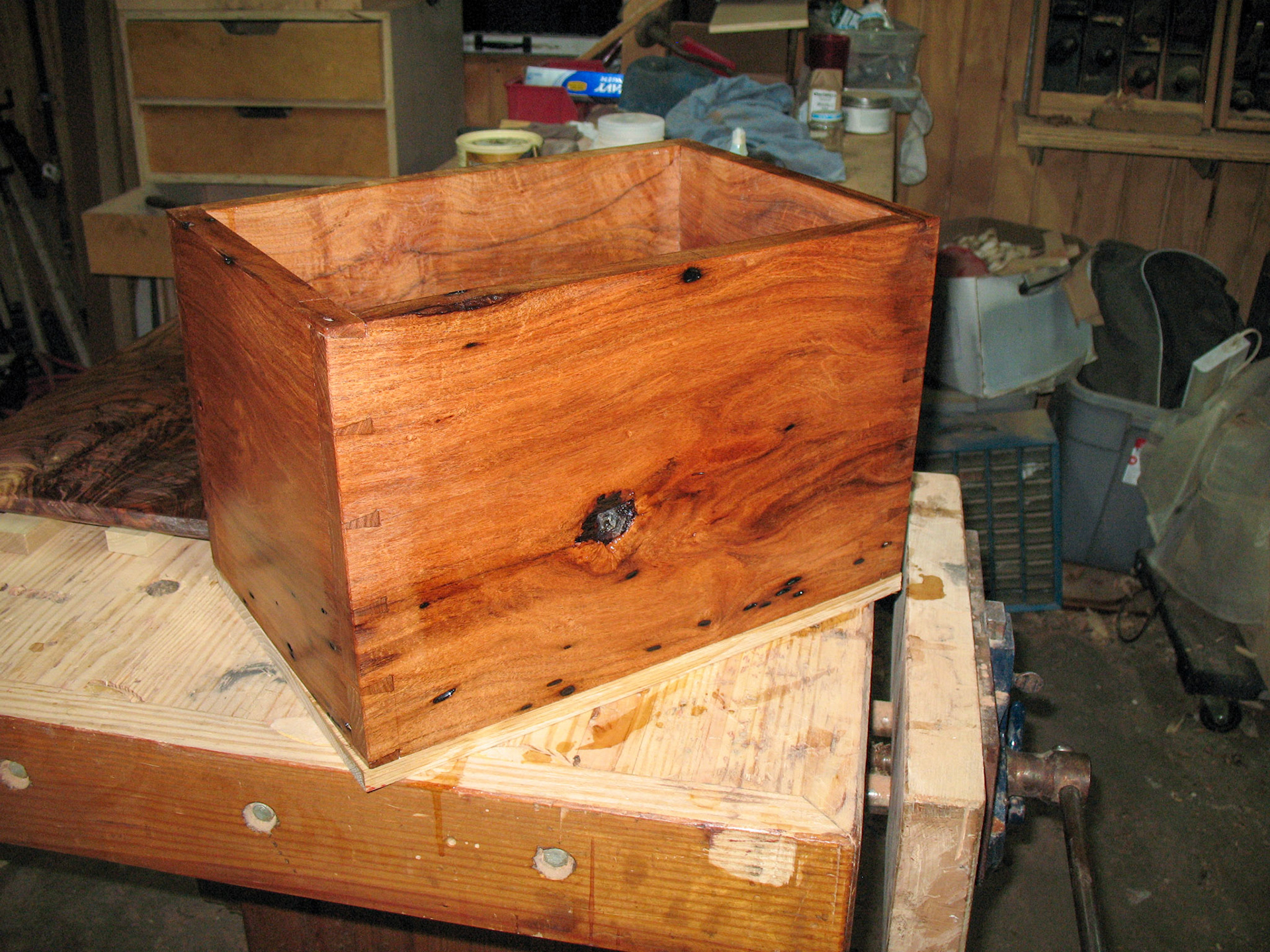 1st coat of shellac drying on freshly glued up box